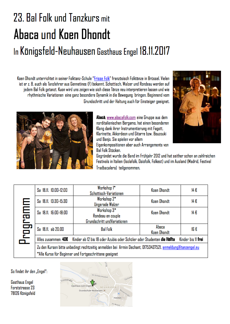 Koen Dhondt will teach this workshops in English. At night there will be a folk ball with Abacà and DJ Koen.