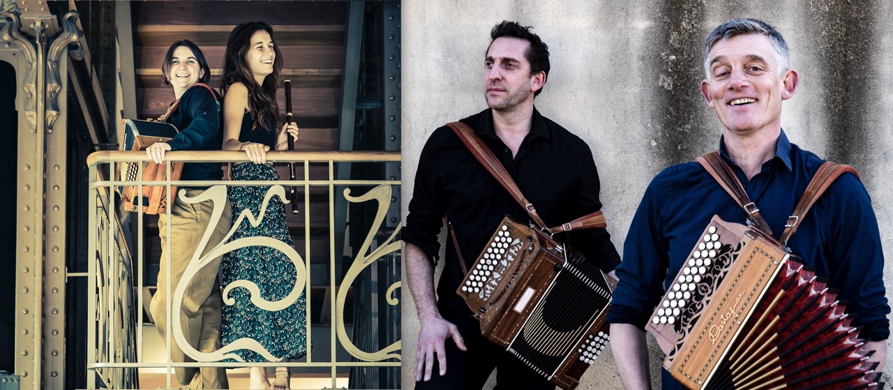 Les kickeuses est un duo né de la belle rencontre entre Juliette Ferreira et Lolita Pariaud. Laissez-vous emporter par leur voix, le jeu endiablé de l’accordéon et le son joyeux des flûtes, au rythme de la stompbox. Les univers musicaux de chacune des musiciennes, partageant un héritage classique commun et l’amour des musiques et danses traditionnelles d’Europe, leur ont permis de développer un duo doté d’un langage unique et d’une esthétique particulière, remplis de finesse et d’énergie. L’influence des danses dans leur musique leur permet de proposer un répertoire adapté tant à des concerts intimes qu’à des bals en petit comité ou en festival. Découvrez leurs compositions et quelques chants traditionnels réarrangés avec finesse sur leur premier album, Radio Lambert !