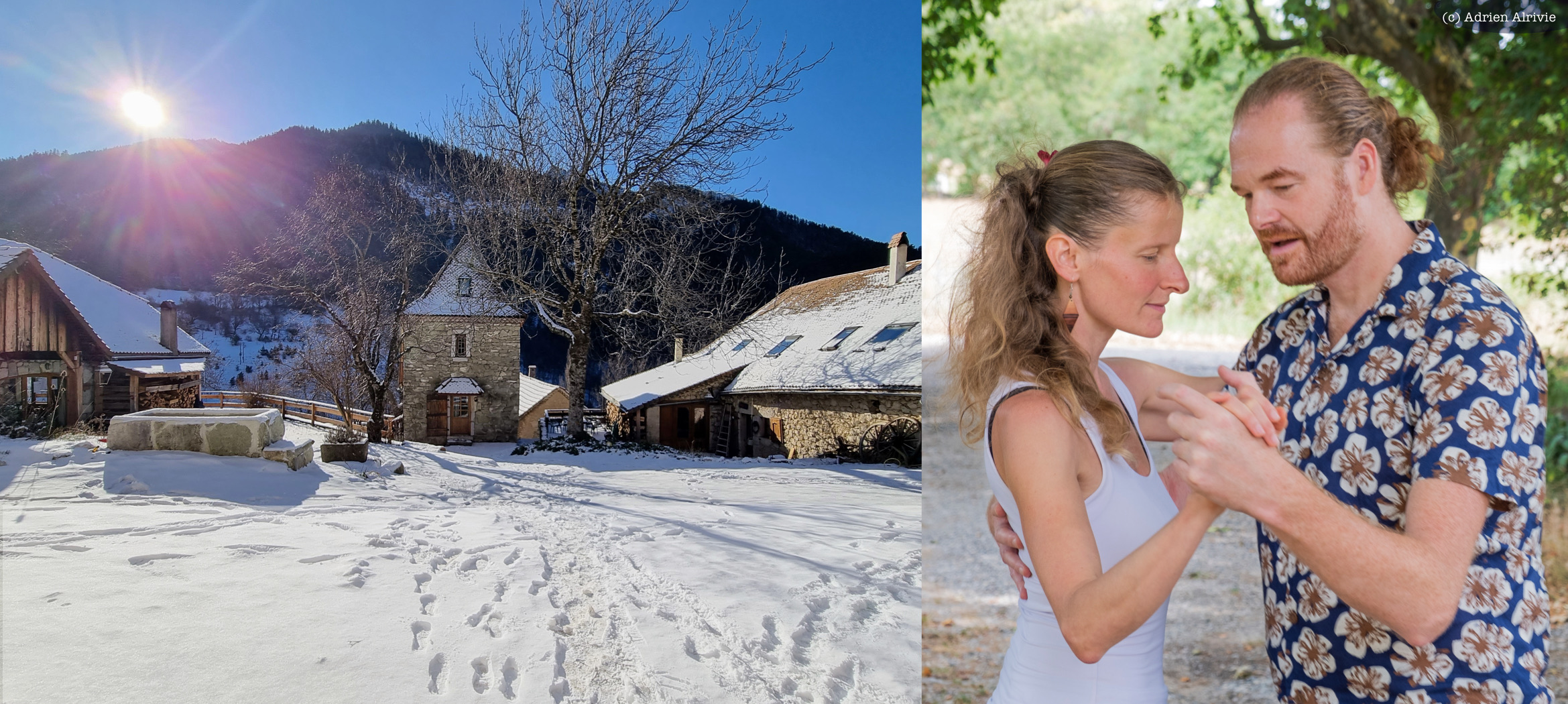 Stage voor gevorderde folkdansers, en voor halfgevorderde dansers die een goede leersnelheid hebben. Laure en Koen zijn het gewoon om te diversifiëren tijdens hun stages zodat iedereen kan bijleren, zelfs in een heterogene groep.